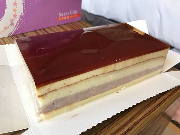招牌的芋泥奶酪,由好幾層組合而成,由上而下分別是,水晶咖啡凍>純奶鮮奶酪>鮮奶濃芋泥>輕乳酪蛋糕。