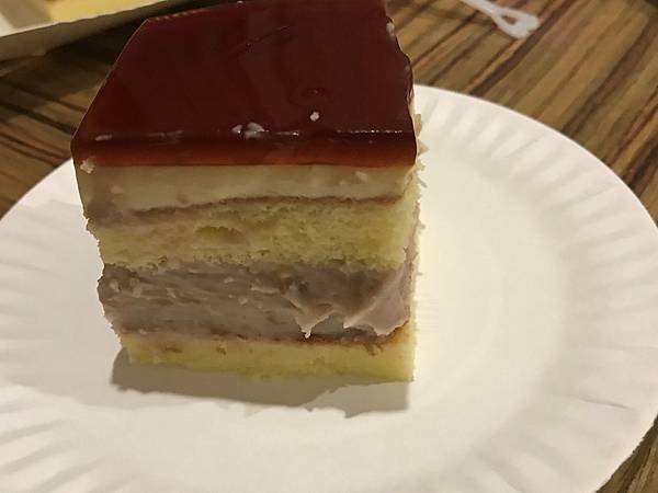 外層的咖啡凍布丁口感很滑順,有淡淡的咖啡香氣,芋泥層用料不手軟,厚厚的一層,餡料很濃郁實在,芋泥控看見這裡應該會忍不住下手吧,搭配濃郁乳酪香的輕乳酪蛋糕吃起來沒有太大的負擔,不會很膩。