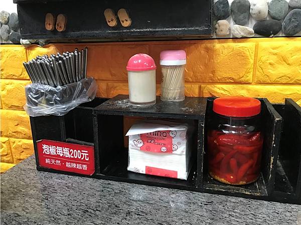 桌上還有放置一瓶泡椒水供大家自行取用,愛吃辣的是必加的喔,很夠味。