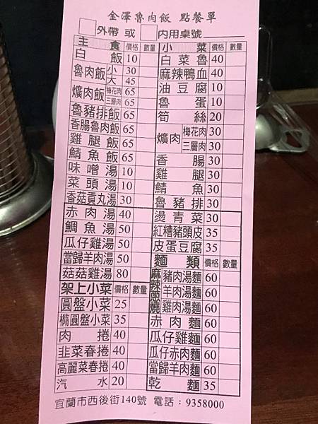 金澤魯肉飯菜單,幾乎就是銅板美食了。
