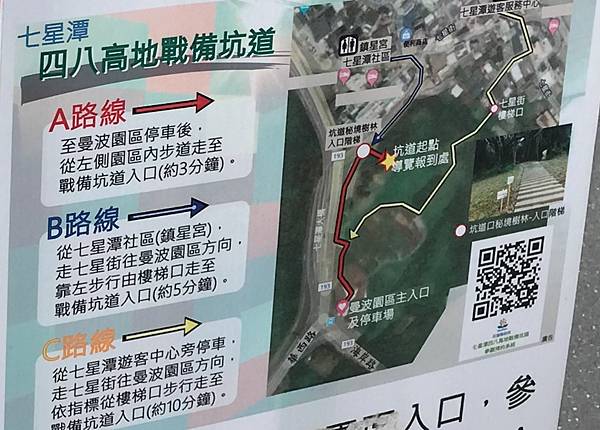 提醒一下,因戰備坑道建立於日本時期歷史遺跡,故目前無設置廁所,若需如廁者可洽七星潭社區鎮星宮,或是花蓮酒廠。
