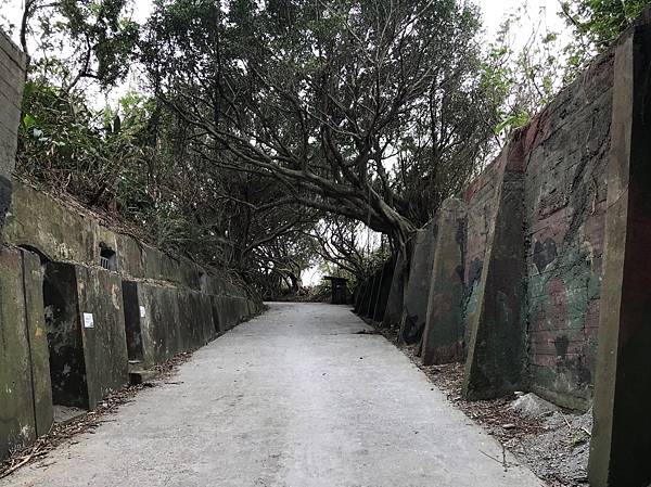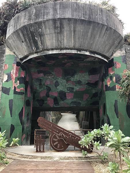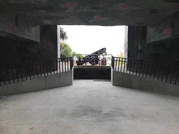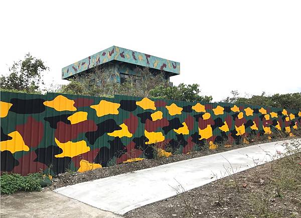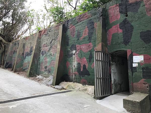 走出坑道之後眼前的砲陣地,應該是放置大砲的炮台,外牆迷彩塗裝加上周圍被林木包圍,遠看是無法發現的。