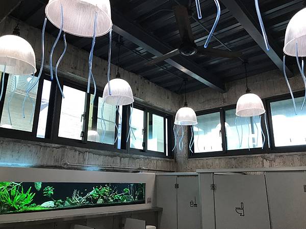 連天花板燈具都是水母造型。