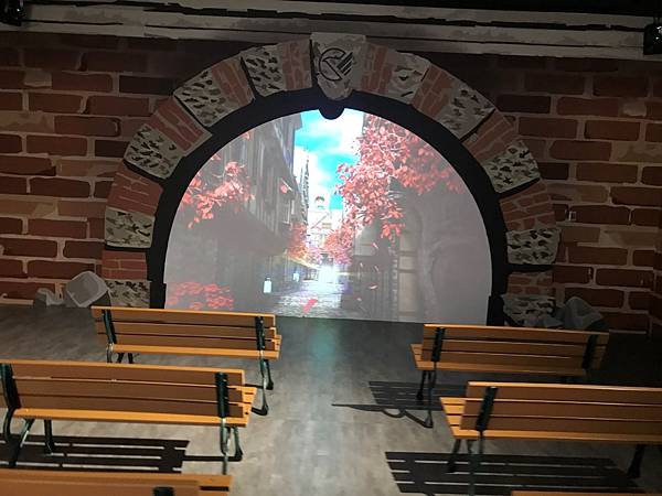 一進門就可以看到這小型電影院,可以在這欣賞三分鐘萬國通路簡介。