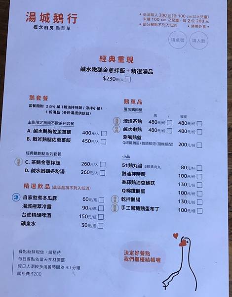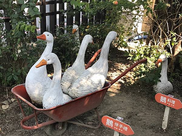 湯城鵝行除了提供傳統美味的鵝肉料理,而且隨處可見富有趣味的創意巧思,戶外還有一些可愛的鵝公仔和可愛的指示路牌。
