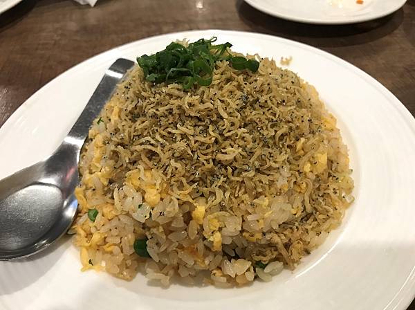 一開始上桌看到吻仔魚乾乾的,原來吻仔魚經過油炸處理,所以吃起來是有點脆脆的,除了有魚香並挾帶著蒜味香,再搭配粒粒分明的炒飯還有不少份量的炒蛋也在其中及爆香的蔥花,整體是不錯。
