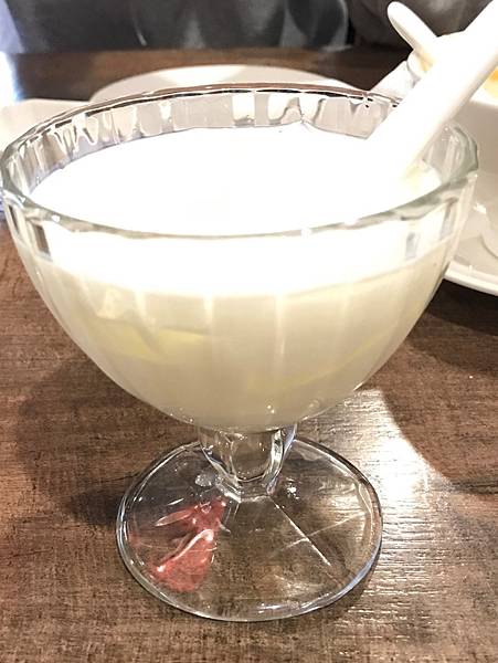 杏仁冰奶露,不怕杏仁味的客人倒是可以考慮點來吃看看,在用完餐後,來一杯冰冰涼涼的杏仁冰奶露,不只是杏仁口感不錯,更有喝飲料冰涼的感覺。