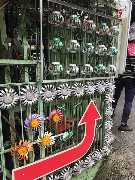 民宅旁有著用易開罐做成的燈籠,風車手工藝品,還不錯喔。