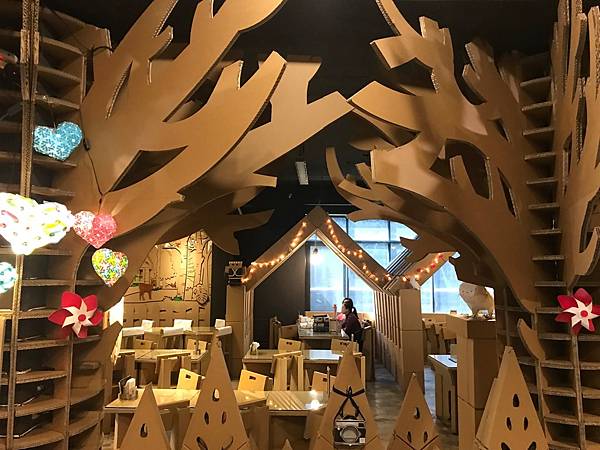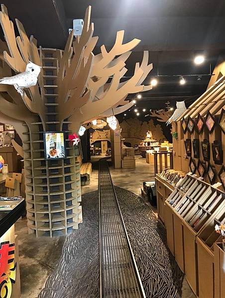 軌道不只是在外圍繞,連紙箱王店內都會跑一圈,很特殊的設計。