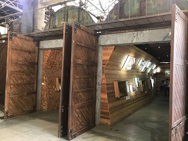 第一站是車埕木業展示館,這個大屋頂包著另一個大屋頂的建物應該是為了保護古蹟的作法。