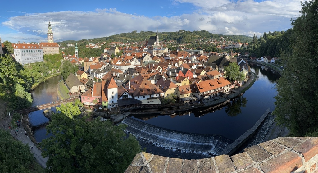 今天的最後一站是俗稱的CK小鎮,也就是契斯科庫倫洛夫Český Krumlov,距離布拉格約3小時車程,是捷克最受歡迎的景點之一。庫倫洛夫更以童話風格小鎮聞名,有橘色屋瓦、彩色磚牆彷彿置身童話世界裡, 庫倫洛夫也在1992年被登錄為世界文化及自然雙遺產。