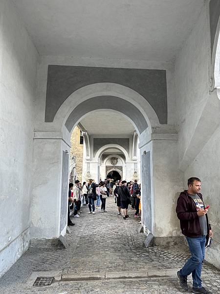 這城堡的地板幾乎都是小石板(塊)鋪設的,市區的街道也幾乎都是,領隊開玩笑叫它做行李箱殺手,大家應該可以想像得出來。