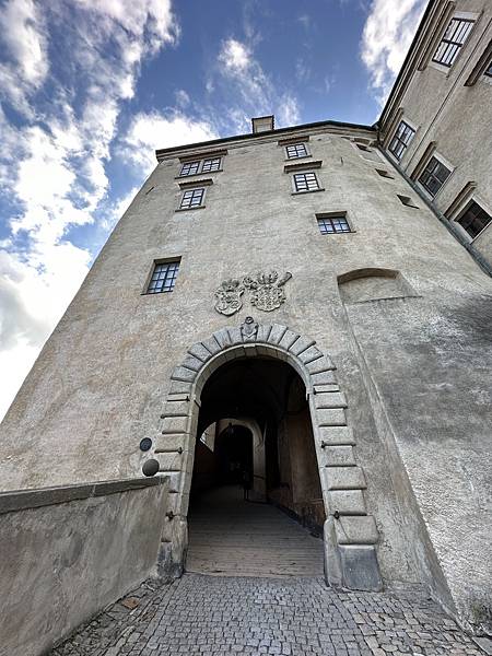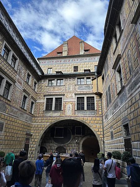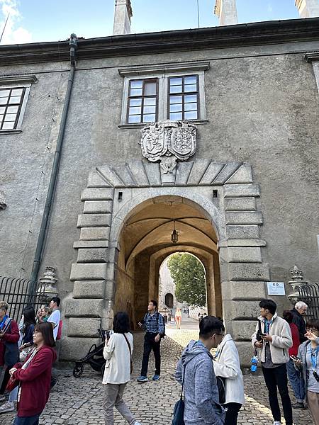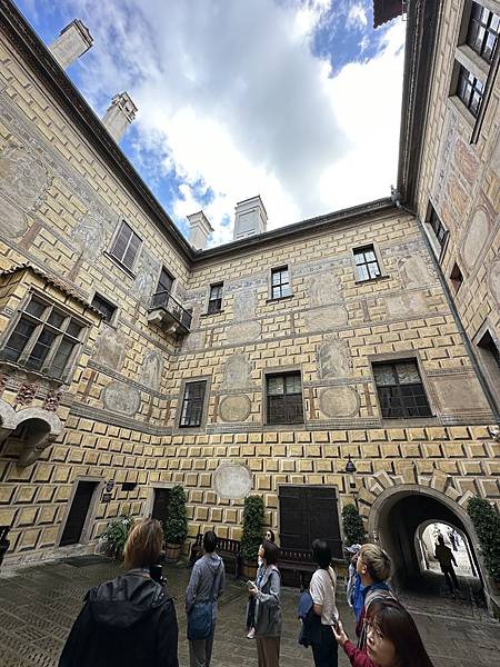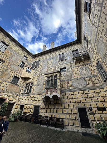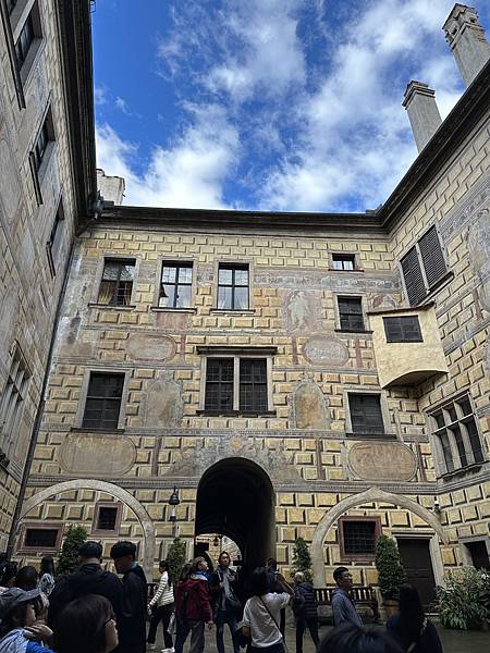 進了城堡內的第一個區域就是一個類似天井的地方,四周的牆壁感覺像是現代彩繪一般,看不出來這已經是有年代的建築物。