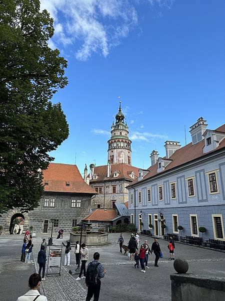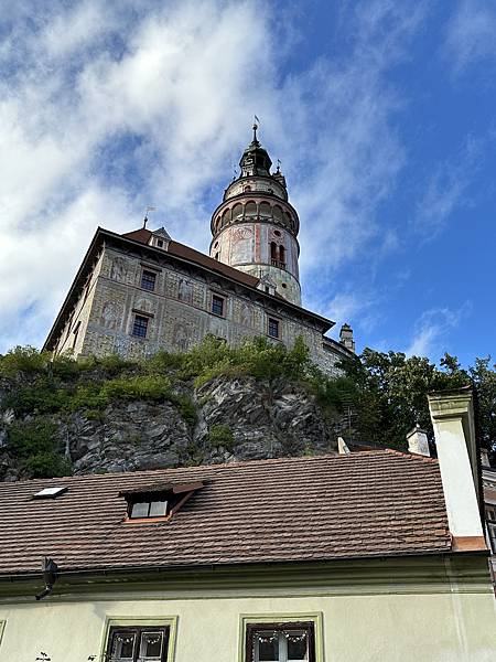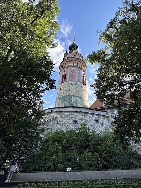 還沒進入C K小鎮就可以看到遠方明顯的一座尖塔,這就是大名鼎鼎的 - -- 彩繪塔(Zámecká věž),位於第二城堡內院的彩繪塔是CK小鎮的地標,也是最高的建築,共147階樓梯,六層樓的高塔底下兩層是哥德式的設計,第三層開始是文藝復興風格,16世紀時高塔外牆畫上壁畫使用幻影彩繪技法,利用光線及顏色交錯產生視覺上的錯覺,達到立體的視覺效果,在CK小鎮各處幾乎抬頭就能看到彩繪塔,登上彩繪塔塔頂也是俯瞰CK小鎮風景的絕佳地點。