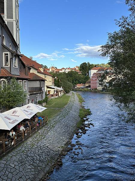 伏爾塔瓦河呈S型流經CK小鎮,所以在河道沿岸幾乎都看到一些店家放置桌椅做生意,不喝杯啤酒的人們也可以悠閒的漫步。