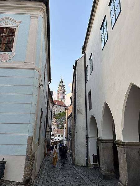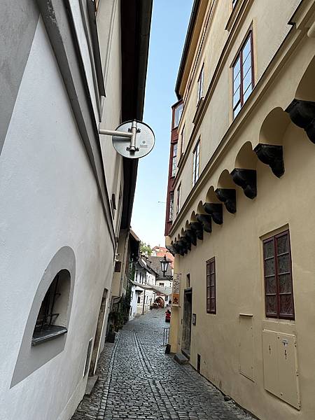庫倫洛夫城堡區 Latrán 路,網路上查到這是進入CK小鎮的主要道路,從進入小鎮的城門(Budějovická Gate)一直延伸到理髮師橋,是小鎮最熱鬧的道路,沿路有許多商店、餐廳、小型的COOP超市(以食品為主)及旅客服務中心也在這條路上,古代時則是為城堡中工作的藝術家、工匠及煉金術士等居住的地方。