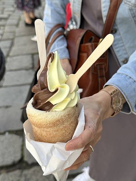 這家麵包霜淇淋店家是這邊最有名的,大家可以依照窗戶上的菜單自由選擇,店員不一定能溝通,直接跟店員說幾號的即可。