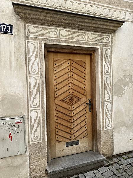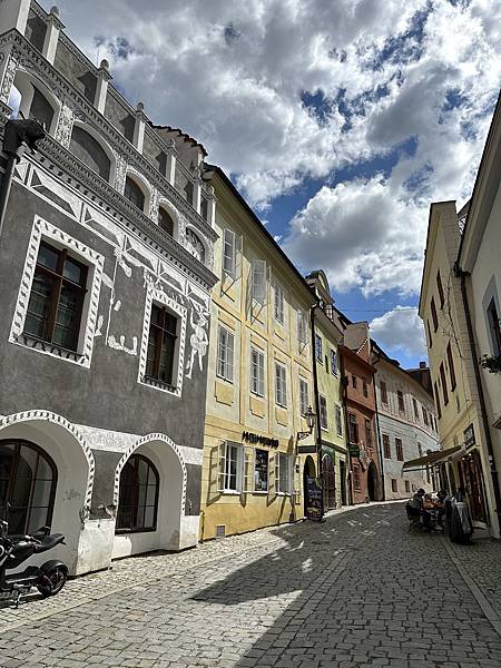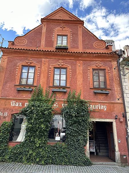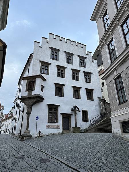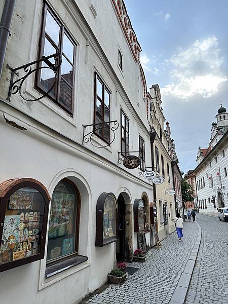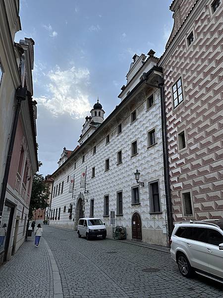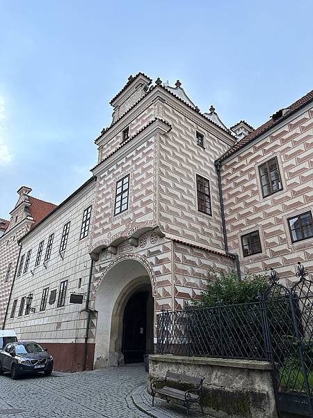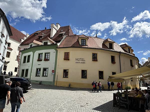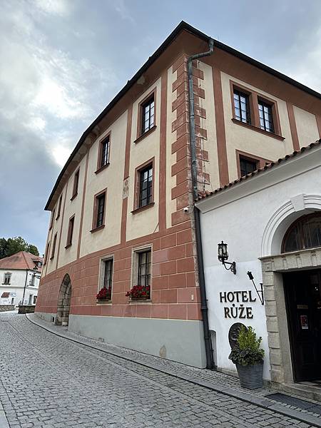 隔天起了一早自己一家人先到處逛逛,首先來到這間有著3-400年歷史的唯一五星飯店,HOTEL RŮŽE玫瑰飯店,中古世紀玫瑰家族飯店,外觀維護的很棒。