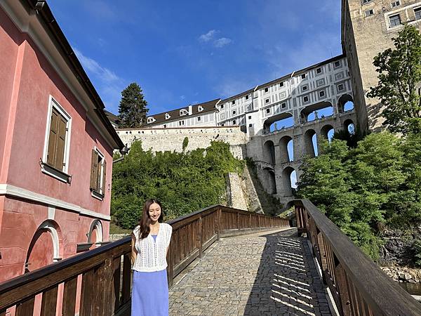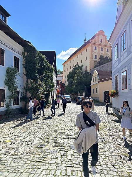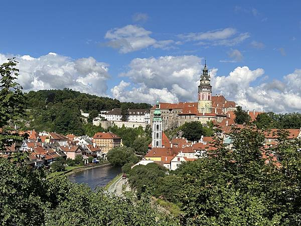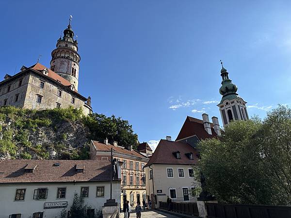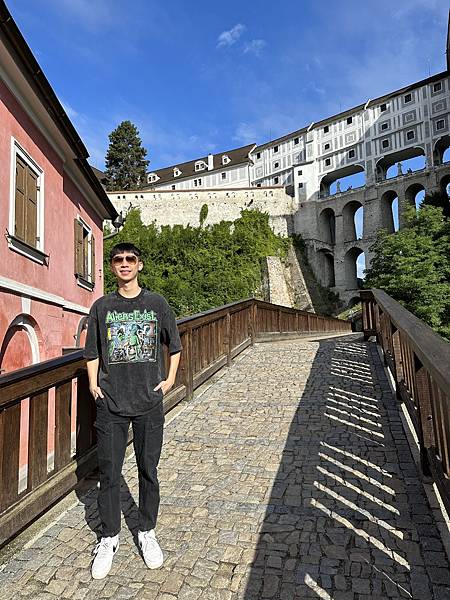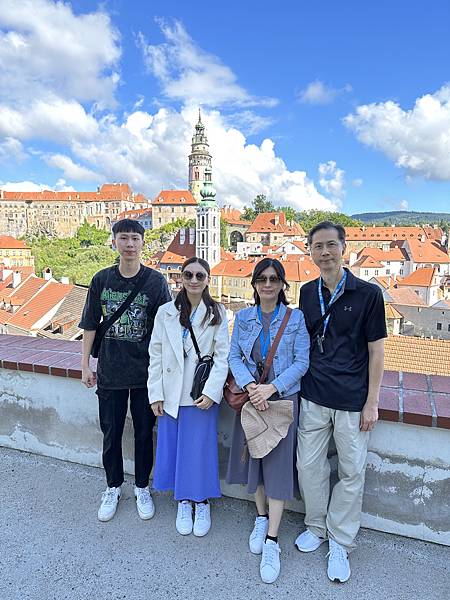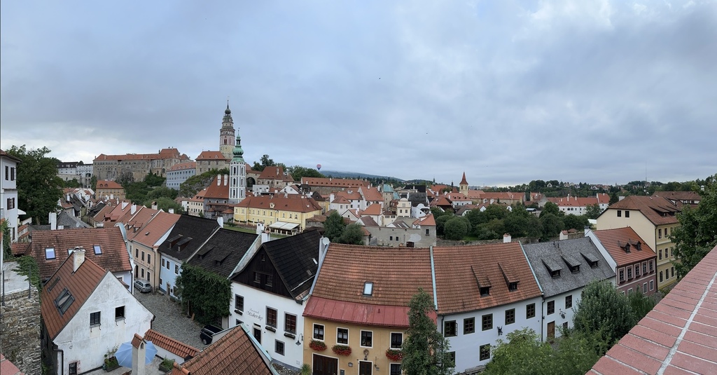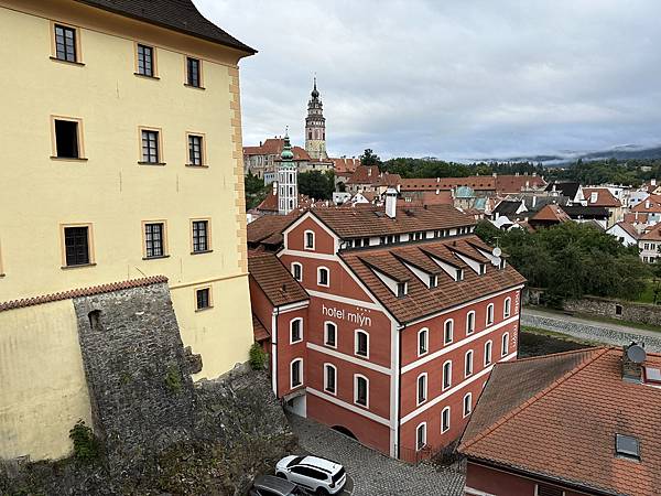 Hotel Růže玫瑰飯店門口對面的觀景平台,是觀賞彩繪塔、以及拍照的絕佳地點,沒想到後來當地導遊也帶我們來到這邊拍攝。