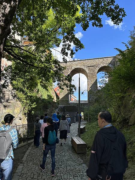 是一座建於十五世紀的空中橋廊,原本是木造吊橋,後來改成石橋,三層樓的石橋以巨大的石柱支撐非常壯觀,曾經被法軍拆毀現在的石橋是後來重建的,橋上有許多聖徒雕像,從橋上也可以眺望小鎮風景。