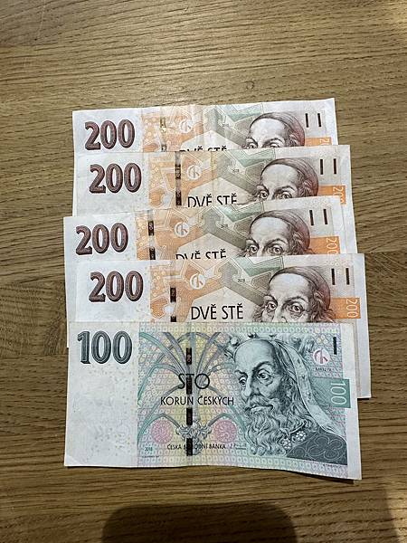 這輩子第一次擁有捷克的紙鈔(克朗),原因是....結帳刷卡時店員弄錯商品價格,95元的東西打成995,所以就變成刷卡換現金了,無言,因為離開捷克就無用了,所以逼我們要在離開前努力用完。