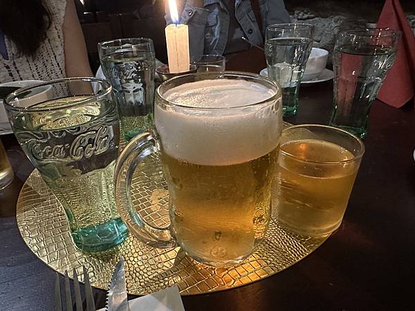 飲料有多種選擇,服務員會用不熟練的中文說啤酒,可樂,雪碧,蘋果汁.....。