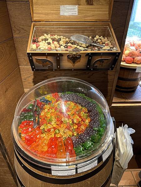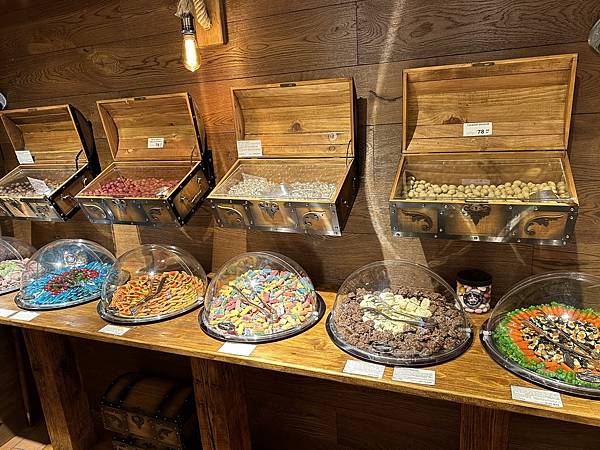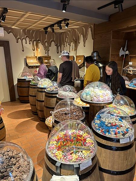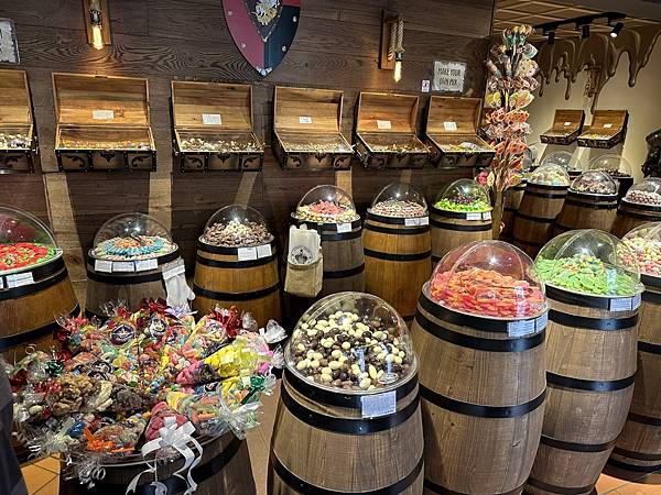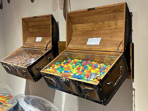這一家糖果專賣店感覺超棒的,每一樣糖果都放置在桶子和藏寶箱上面,好像進入糖果的藏寶室裡了。