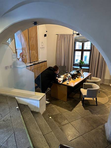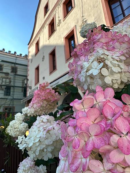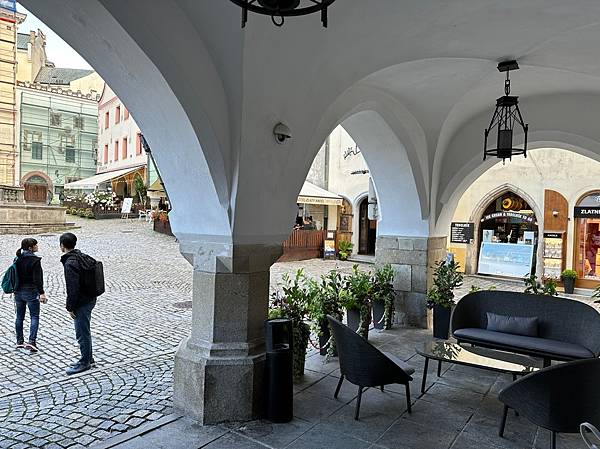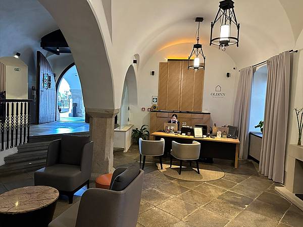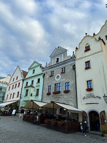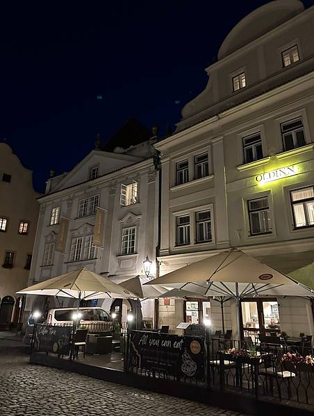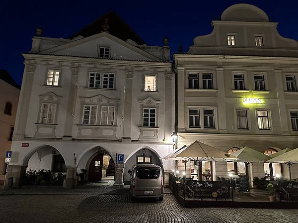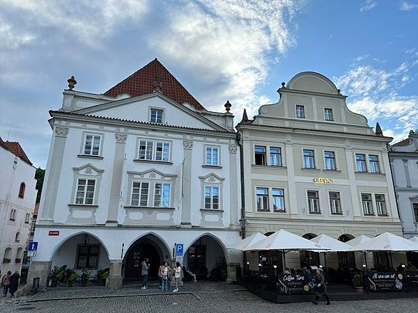 這家4星飯店是Hotel OLDINN (歐德飯店)位在CK小鎮舊城廣場旁,可以從下圖中看到飯店的名稱是位在右邊這棟,疫情期間猶太人買下來左邊的一起重新整理,所以進出的大門現在是在左邊這一棟。