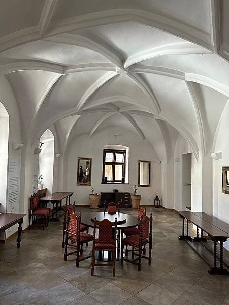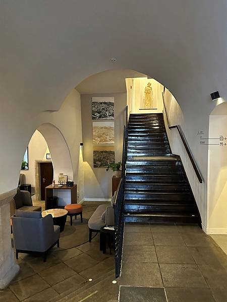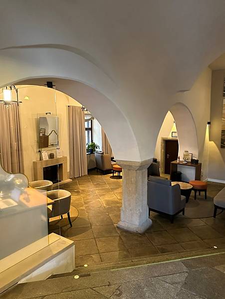 櫃台大廳前方更深處的空間,天花板造型很別緻。