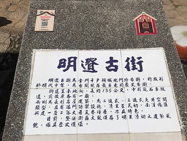 明遺老街過去曾是金門城的繁鬧市集,在地人又稱這裡為「買菜街」,隨著金門從清初政經中心移往後浦,才逐步走向沒落。