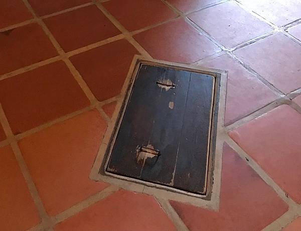大廳正中央地板有一個木板,應該是通道。