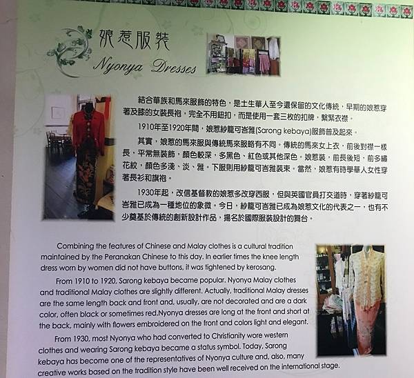 服飾方面有著專有名詞<娘惹服飾>,結合兩國的優點,華麗很多。