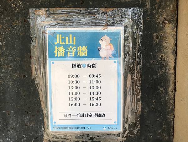 「親愛的大陸同胞你們好,我是鄧麗君......」鄧麗君那清脆的嗓音從巨大的播音器裡傳出,位於北山斷崖上的北山播音牆,與馬山觀測所的馬山播音站,同為金門戰地時期用來喊話打「心理戰」的前線,用國語、閩南語廣播新聞、宣傳、評論、招降等訊息。