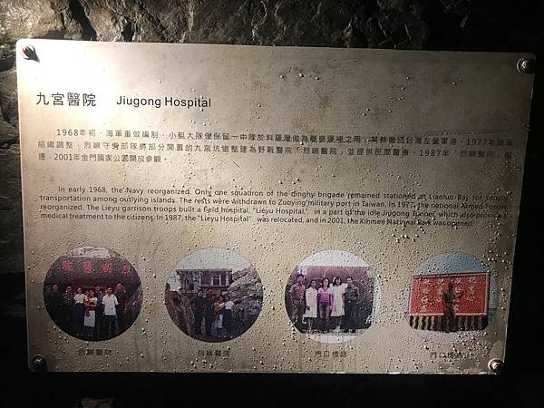 九宮坑道又稱四維坑道,位於烈嶼東南方羅厝與九宮之間,民國50年開挖,為大小金門人員、物資運補之用;民國87年移撥金門國家公園,於90年開放為參觀景點。烈嶼遊客中心前身為九宮醫院院址,屬於戰地坑道醫院型式,民國66年營運至76年間,為開鑿花崗岩地下工事提供醫療服務。
