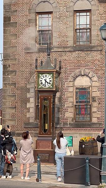 門口是非常知名的<古典蒸汽鐘>,這是1977年由加拿大工匠以青銅打造而成~高5.5公尺、寬1公尺、重1.5噸,整點會報時,每隔15分鐘也會吹奏五個音階的旋律,分享一張有噴蒸氣的照片。
