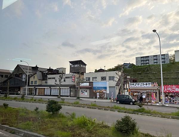 快到停車場時先看到著名的<北一硝子館>,等一下會經過喔。