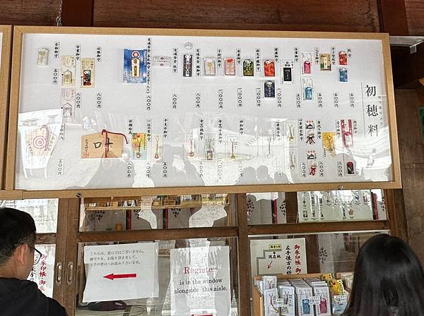 若是有在收集御朱印、朱印帳的朋友們,可以到御守販賣櫃檯的左手邊通道移動,在那邊有各式各樣的祈福書寫,人多到需要領號碼牌等候叫號!若是想要請神職人員幫忙寫御朱印,也是交由前方的服務人員,再由後方專門書寫的神職人員協助書寫。