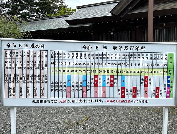 來日本跟團旅行神社是一定有的,所以我們的北海道之旅的最後一天就安排來到<北海道神社>,北海道神宮本身有五座鳥居,我們時間不夠,只看到2座,據說面向東北方的那一座,當時為了防守俄羅斯南下勢力而和其他鳥居面向的方位不同,同時也有斬斷惡緣的利益在。
