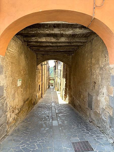 拱型長廊,從兩側的牆壁及上面的橫樑可以知道歷史悠久。