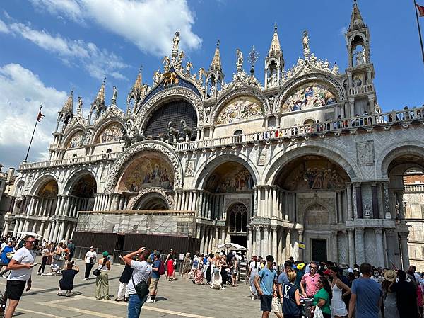 聖馬可大教堂Basilica Cattedrale Patriarcale di San Marco 最初建於828年,歷史悠久,又稱聖馬爾谷聖殿宗主教座堂是位於義大利威尼斯的天主教宗座聖殿,座落在聖馬可廣場東面,與總督宮相連。最初它是威尼斯公爵的專用教堂,1807起它成為天主教威尼斯宗主教區的主教座堂,同時是威尼斯宗主教駐地。其為拜占庭式建築的著名代表,有「金色聖堂」(Chiesa d'Oro)的美譽,這美譽有一定程度是來自於夕陽西下,一片金色的餘暉在教堂後面,整個視覺畫面呈現一片金色而來的。