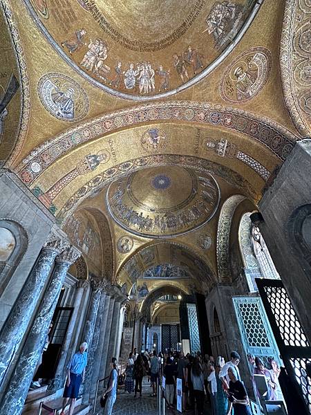 這裡一樓是免費入內參觀,而教堂內另設有位於二樓露台的小型博物館、寶物庫及祭壇內鑲滿寶石的黃金屏風Pala d'oro則需購買門票,聽說整個聖馬可大教堂內部裝飾,手工精緻的馬賽克,可用浮誇來形容,又機會可以上去看看。