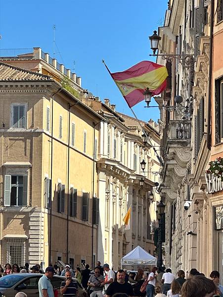 西班牙階梯這邊整體來說人潮是超級多的,所以要拍照就需要等待了,周圍精品店不少,也因為是跟團旅遊的最後一天了,如果沒買到或是沒買夠精品的人這裡是除了機場的最後機會了。