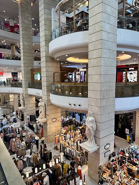 G 樓以羅馬風格為設計,這些雕像和石柱,就彷彿是在歐洲的感覺。