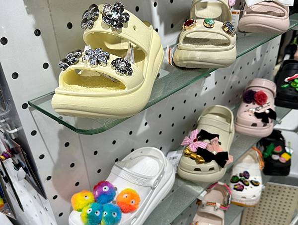 下圖的鞋子要特別說一下,在許多地方都有看到在賣專用的飾物,品牌我是不知道,但是鞋子上面的洞都是可以依個人喜好自由搭配不同的飾物。