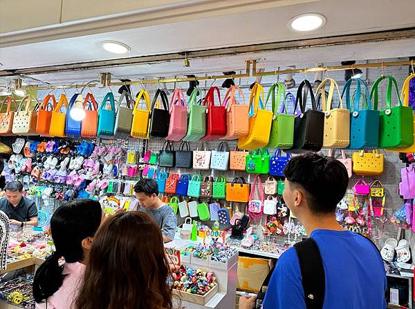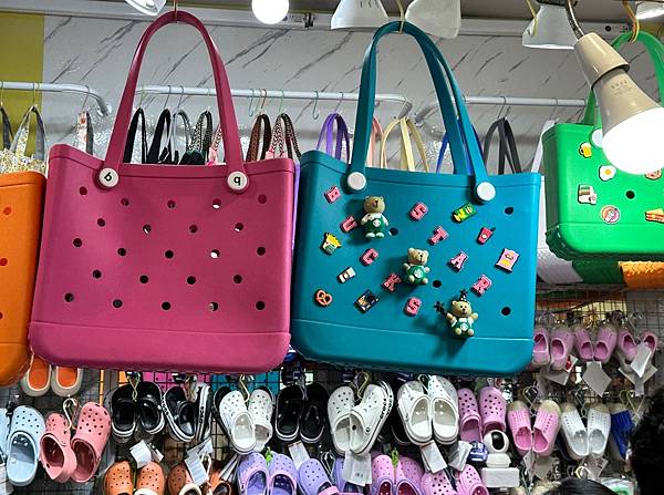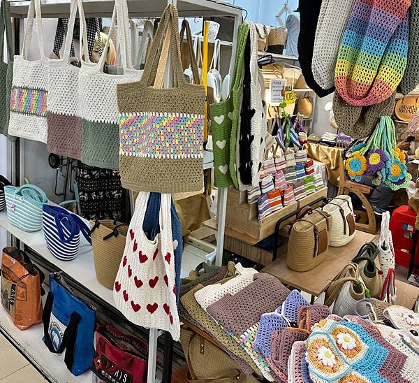 這裡有不少攤位都在販賣包包,東西不貴,而且有打上名字的服務喔,來一個專屬自己的包包吧。