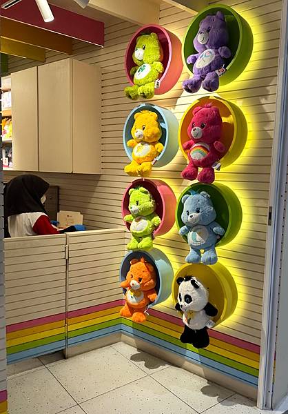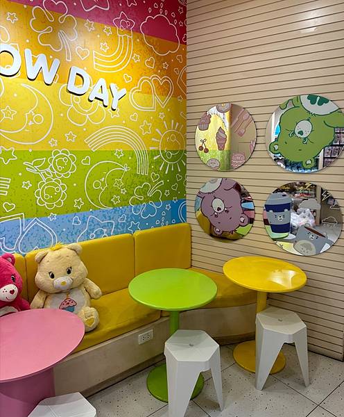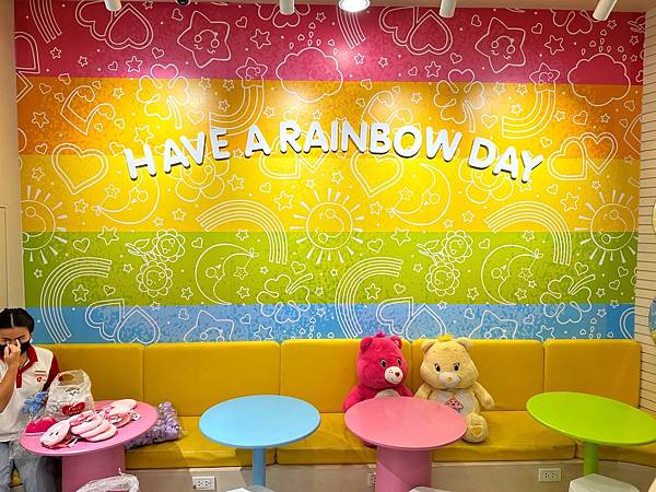吃完東西先來到6樓的 Care Bears Cafe ,這是2023年12月剛開幕的,也是泰國首間咖啡廳「曼谷Care Bears咖啡廳」,小朋友說這是來曼谷自由行的必買商品。(我們目標是玩偶,其他的一概跳過 )