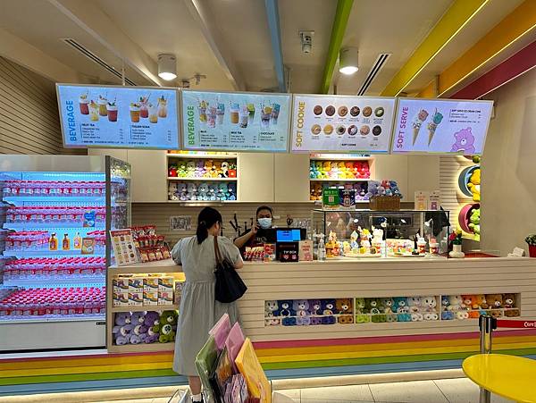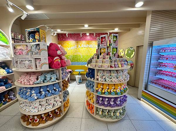 這裡不只可以買到各種大小的彩虹熊,其他的可愛吊飾,Care Bears甜點、造型冰淇淋也有,甚至連礦泉水都有彩虹熊。