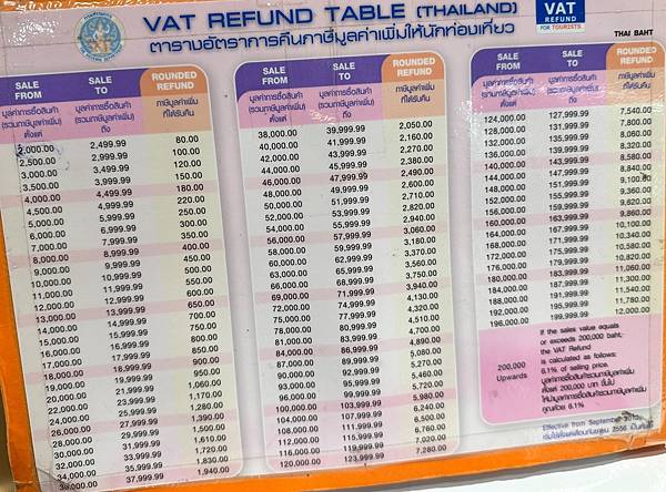 BigC 的退稅對照表,2000元以上即可退稅,應該是一般民生用品,所以退稅的額度比例不高,加減吧,最後要到機場退錢喔。