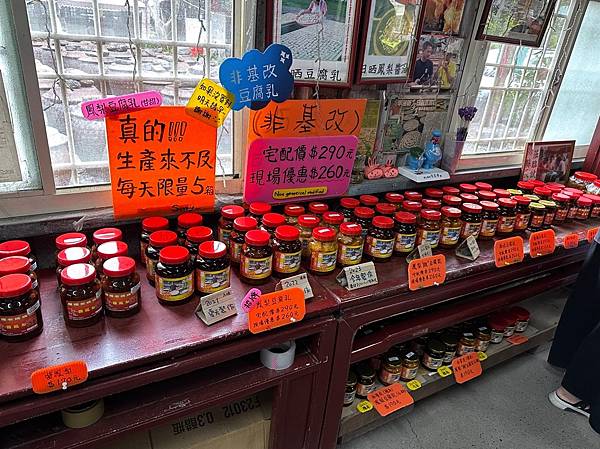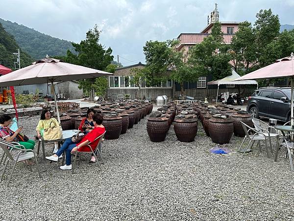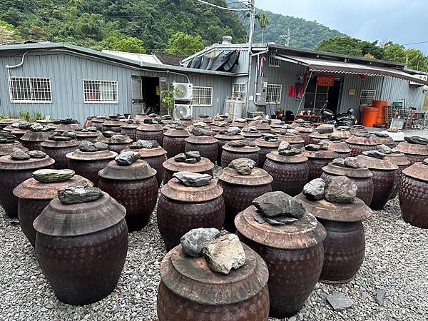 吃完後到外面走走,廣場上放置的一排又一排大甕,這些是老闆堅持以古法製造豆腐乳與醬油,數量其實不多,所以產量有限,只是不知道老媽媽豆腐乳烤香雞全餐是以主打的「手工黑豆醬油」、「酒釀鳳梨豆腐乳」起家還是以豆腐乳烤香雞起家,反正現在來這邊就是吃吃買買。