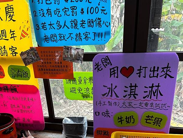 趁著還沒上菜看看環境,這裡有老闆用愛心打出來的冰淇淋,吃起來還不錯,不可以打包,裝了要吃完喔,不然就.....。
